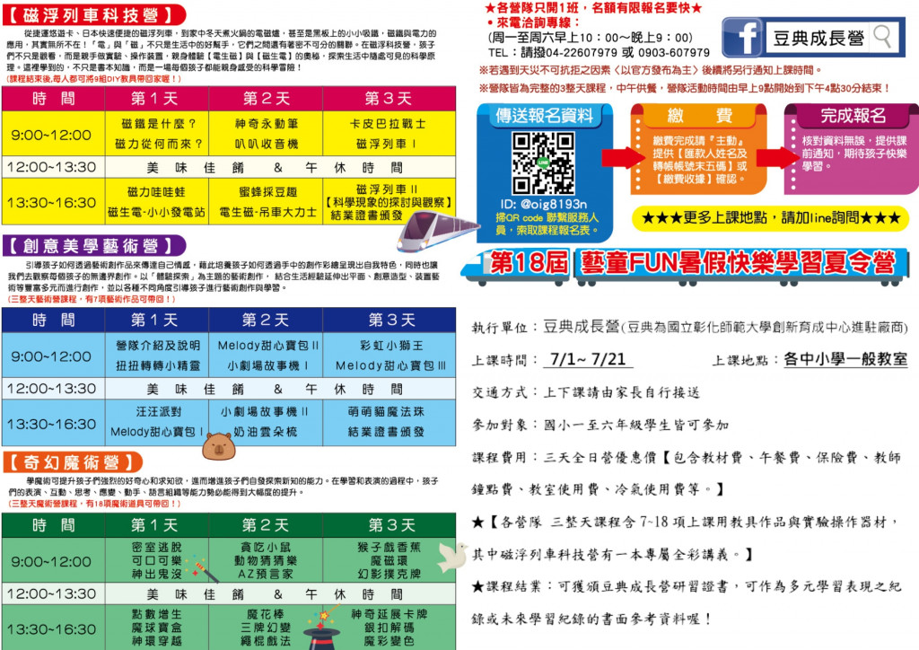 一、旨揭暑期活動分為磁浮列車科技營、創意美學藝術營、奇