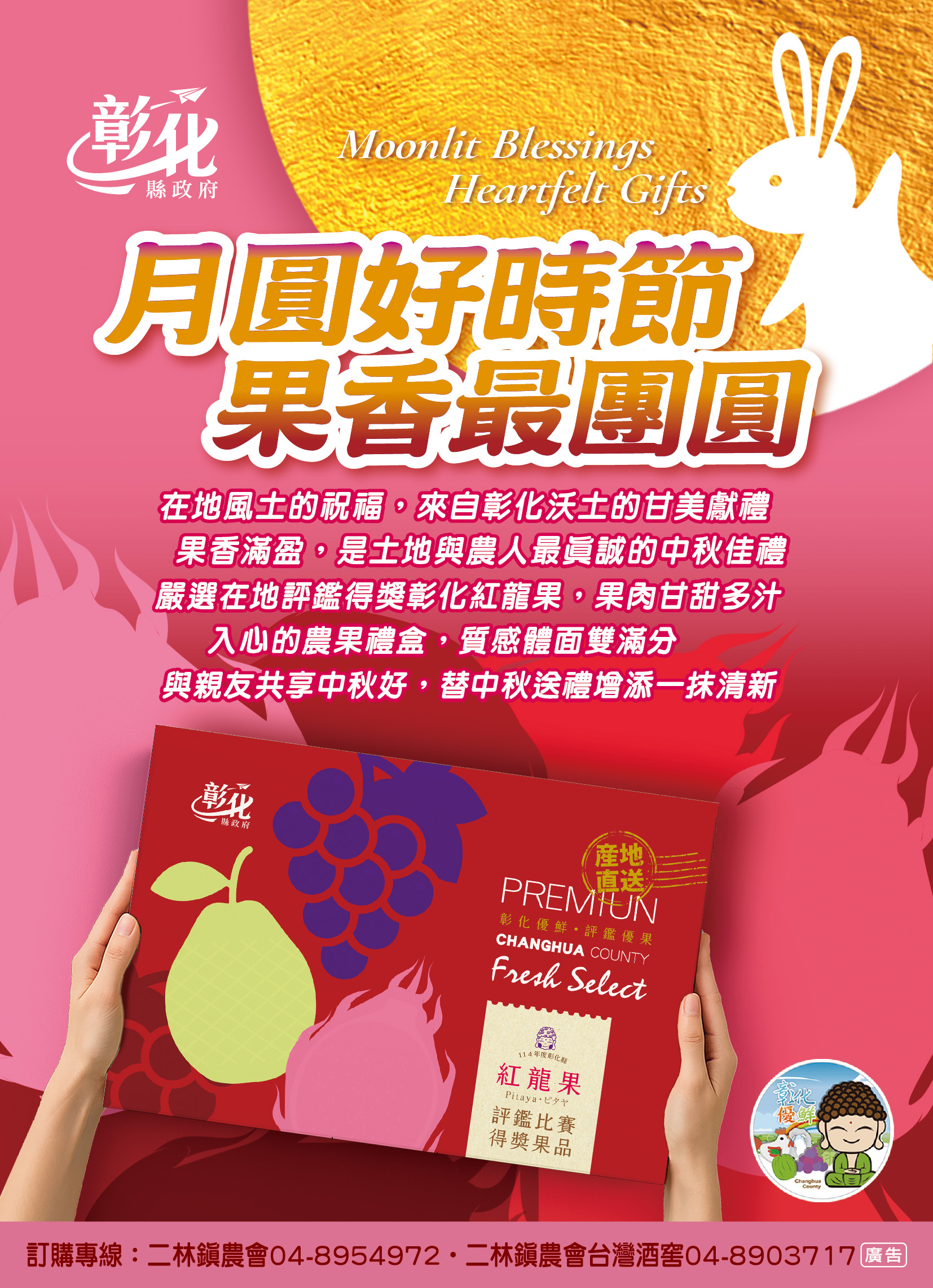 主旨: | 檢送本縣114年度評鑑得獎優質農產品(洋香瓜、紅龍果、津翠番石榴及龍爺蜜)訂購資訊各1份,惠請協助轉知並踴躍訂購,請查照。 |